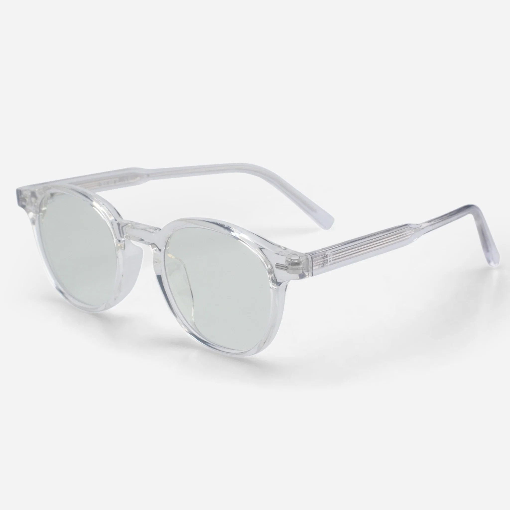 The Billie Blue Light Glasses Gray filter harsh blue light from screens. Multi-layer coated lenses in a gray frame. Light Green lens (42% filter) for all-day wear, Yellow lens (84%) for evening sessions, Orange lens (98%) for complete blue light blocking.Â