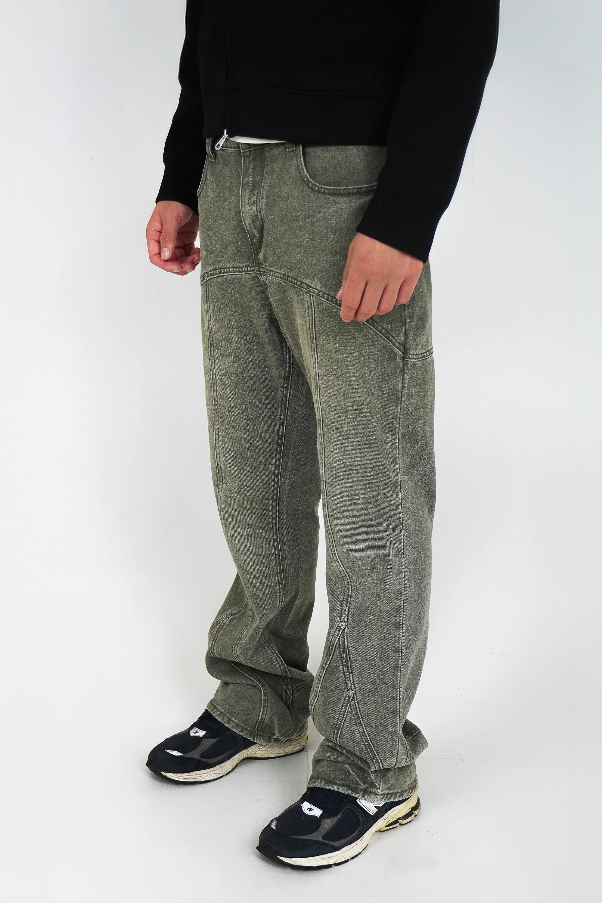 The Billie Jeans Button Straight is a straight-leg jean with distinctive button details in a bold green wash. 100% cotton.