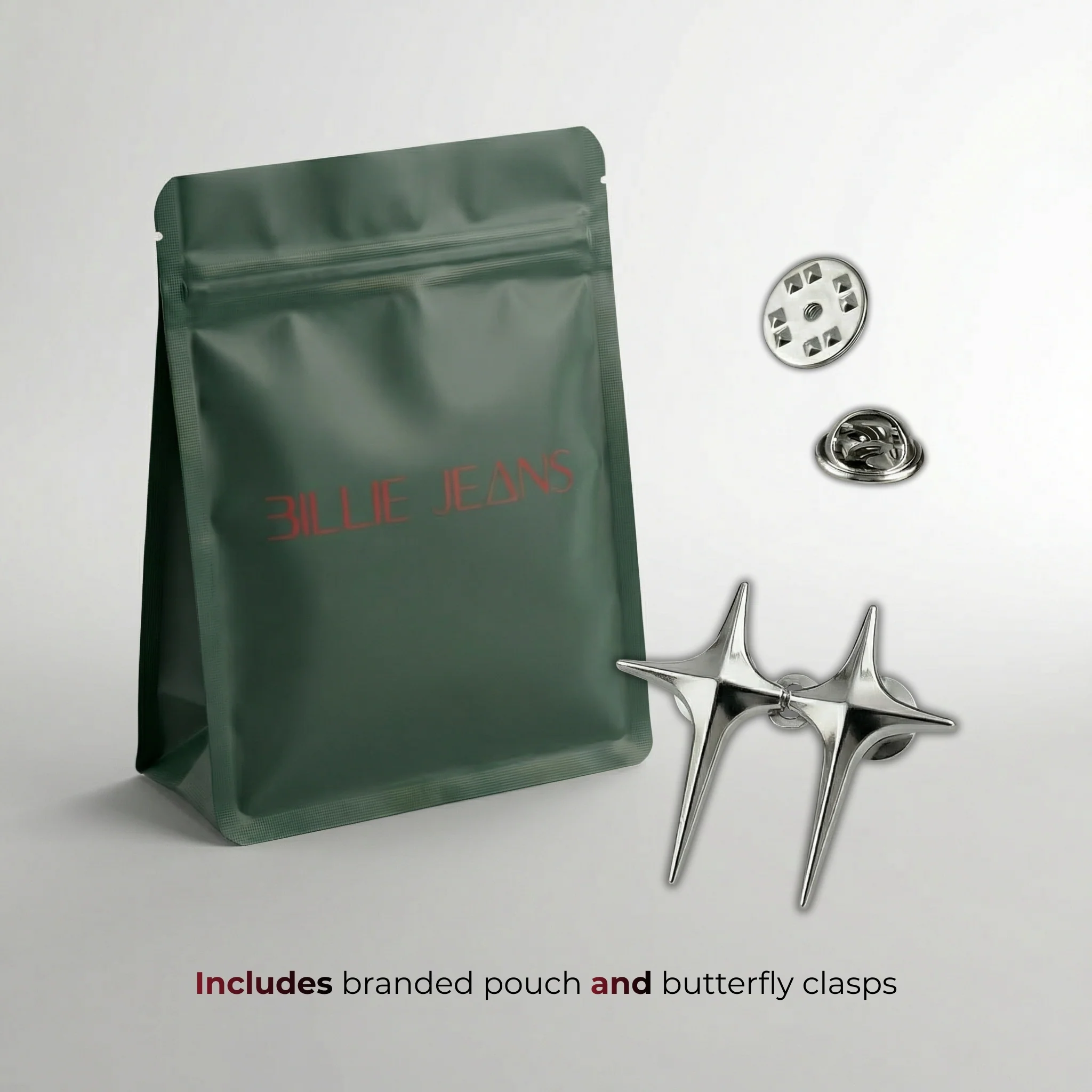 The Billie Jeans Pin Stellar are two satin-finish starbursts that instantly elevate your jeans. Just hook them on, skip the belt, and go.
