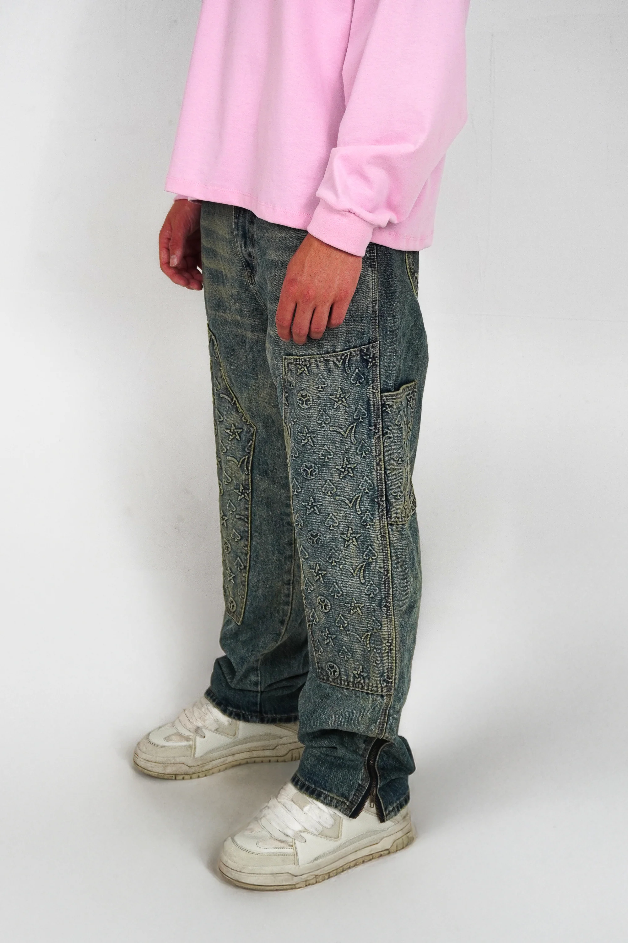 The Billie Jeans Royal Flush Carpenter is a wide-fit jean with subtle carpenter details and embossed accents in a timeless blue wash. 100% cotton.
